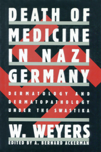 Wolfgang Weyers, a dermatopathologist in Freiburg, Germany, has performed a splendid service both for medicine and for his own specialty. … Weyers chronicles the careers of all the prominent dermatologists during the Nazi period. This is a substantial contribution to medical history. We learn about the physicians’ discoveries and achievements and their subsequent professional lives. The outstanding doctors who were dismissed from their jobs or hounded out of Germany are thereby not forgotten. This history is accompanied by numerous photographs and an extensive and detailed glossary of dermatologic terminology and concepts. … This book deserves a wide reading among dermatologists and other physicians.